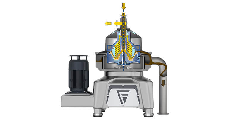 The centrifuge essentially operates according to two key principles: the centrifugal force and the throughput rate. The centrifugal force separates the particles from one another to a greater or lesser extent based on the bowl speed. In addition, the throughput rate can be used to determine the time that the particles and the beer remain in the machine.