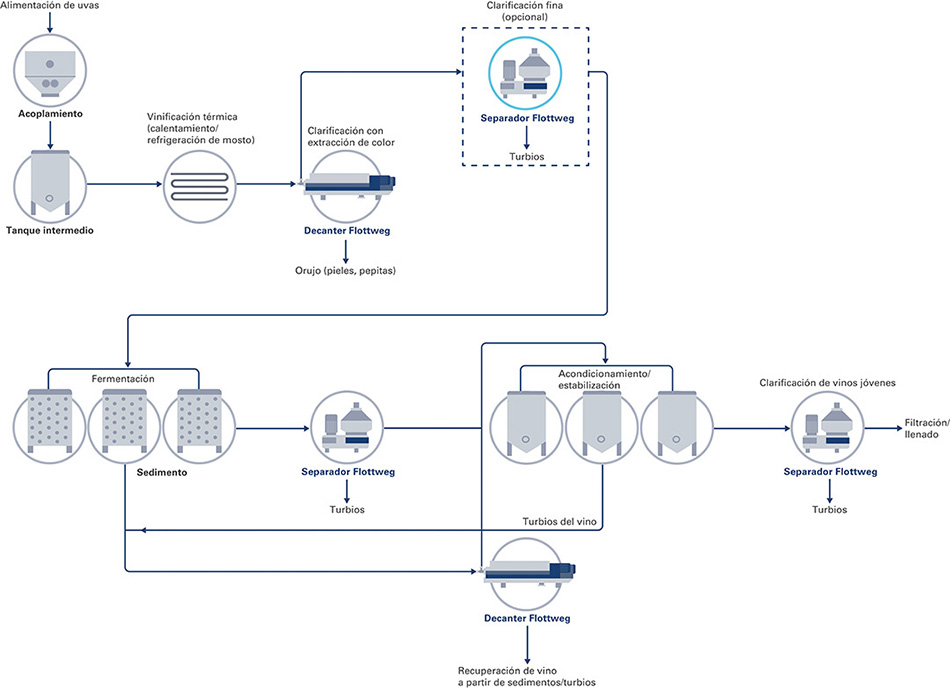 Así funciona la elaboración de vino blanco y tinto con la tecnología de separación Flottweg
