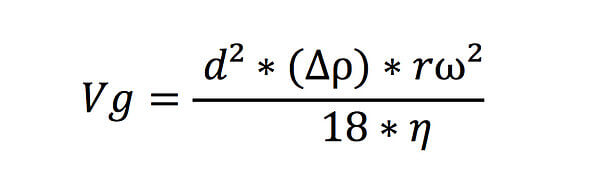 Dans la centrifugation ou le champ centrifuge, on obtient la formule suivante pour la vitesse de sédimentation :