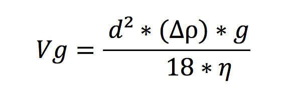 En supposant qu’un écoulement laminaire est présent, la vitesse de sédimentation peut être calculée à l’aide de la loi de Stokes et de l’équilibre des forces.