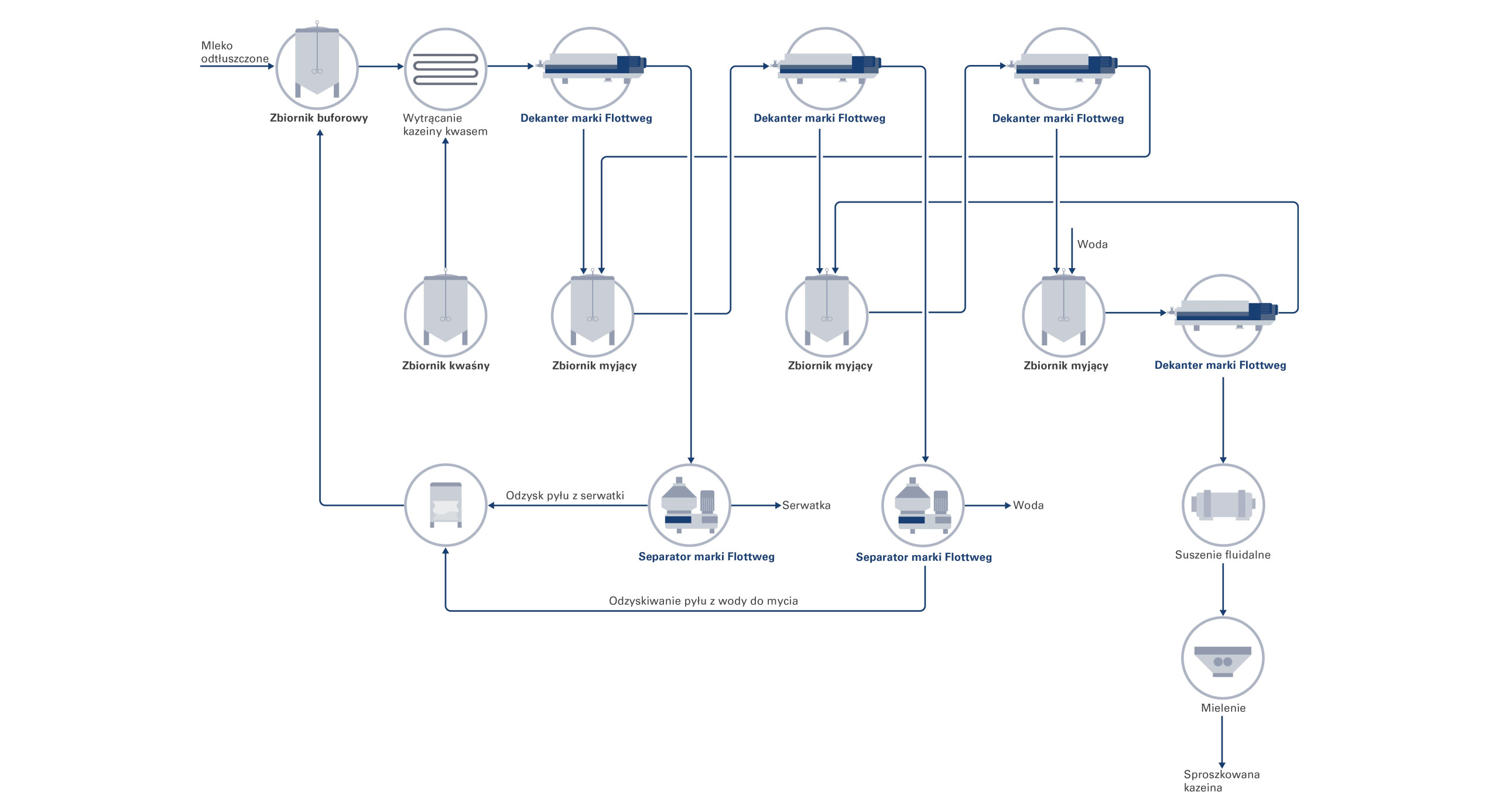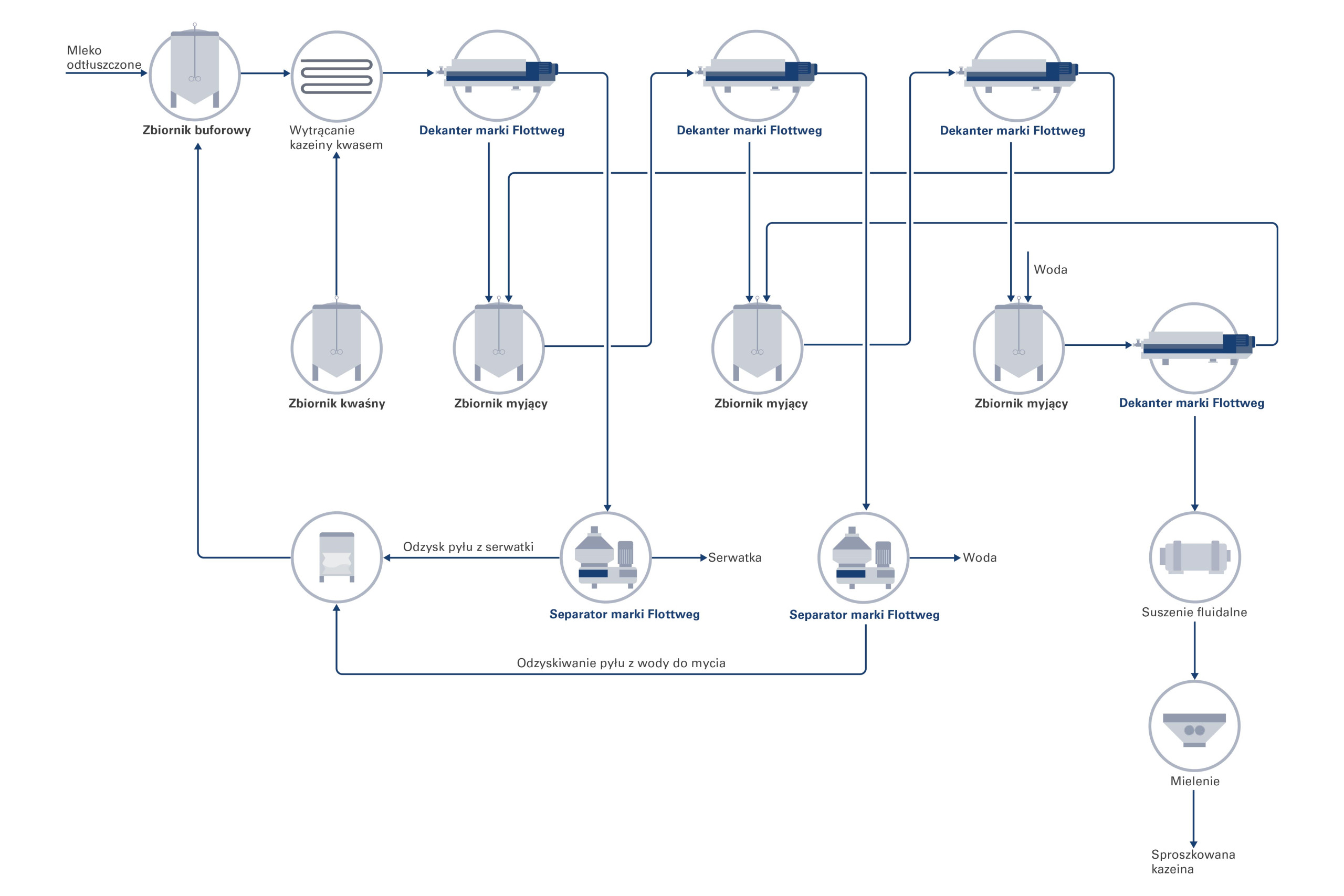 Dekantery i separatory Flottweg do przemysłowej produkcji kazeiny