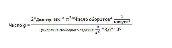 Число g вычисляется из числа оборотов и диаметра или радиуса ротора центрифуги: